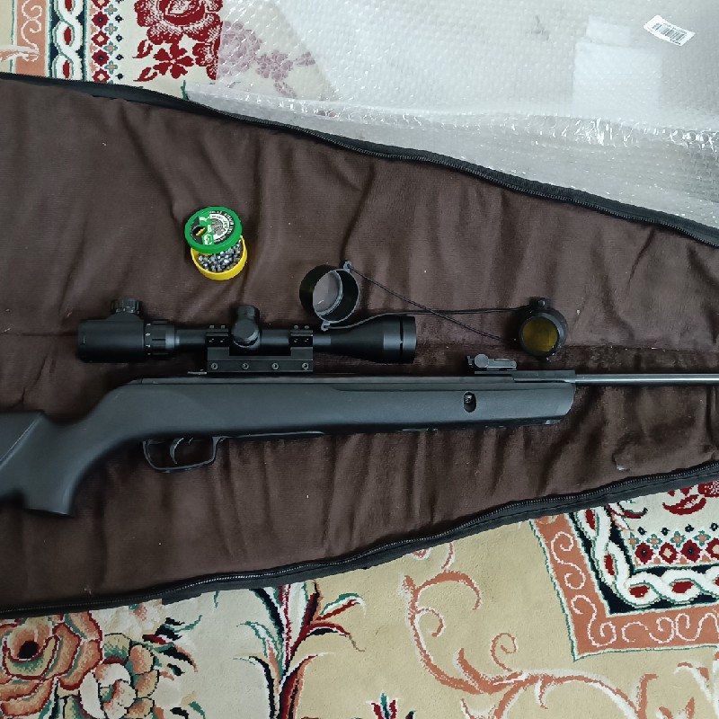 سلام تفنگ بادی گامو شادو 1000 نو نو کمتر از یه بسته تیر باهاش زده شده یه دوربین لیزر دار با کیفیت هم همراهش هست با کیف خود تفنگ