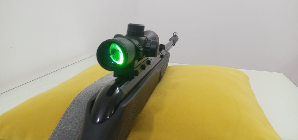 — دوربین روی اسلحه ۴×۳۰ کربون، میلدات دار و چراغ دار همراه با کربون